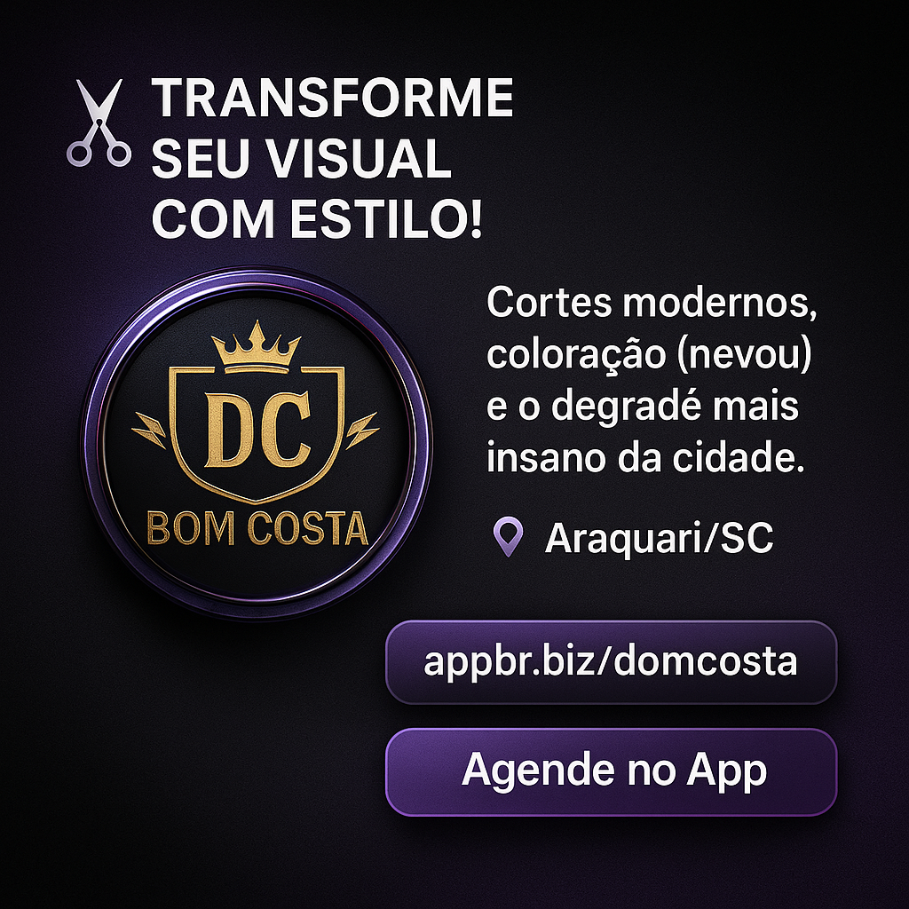 Especialistas em cortes modernos, kids, nevou e degradê. Agende online com facilidade e transforme seu visual com quem entende. ✅ Atendimento com hora marcada. Ambiente moderno. Especialistas em cortes modernos, kids, nevou e degradê. Agende online com facilidade e transforme seu visual com quem entende. ✅ Atendimento com hora marcada. Ambiente moderno.